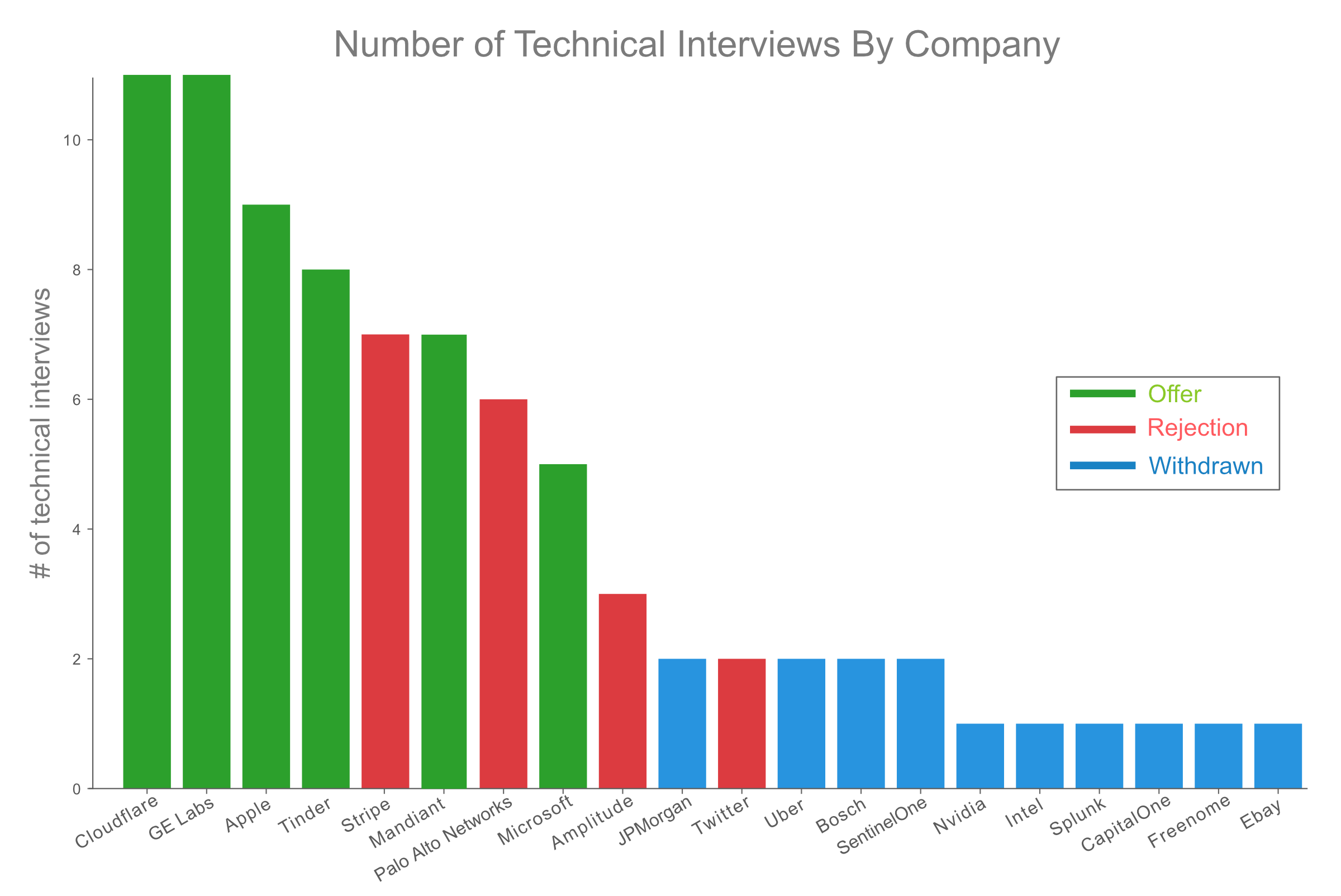 My 10 week journey took 137 hours and culminated in 7 on-site interviews with Apple, Microsoft, Cloudflare, Mandiant, Stripe, Tinder and GE Labs,