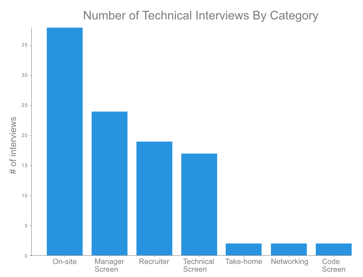 For the most common interview types, take a look at Figure 3 where I aggregate all my interviews by category. This should be pretty representative of what you’ll encounter in your job search.