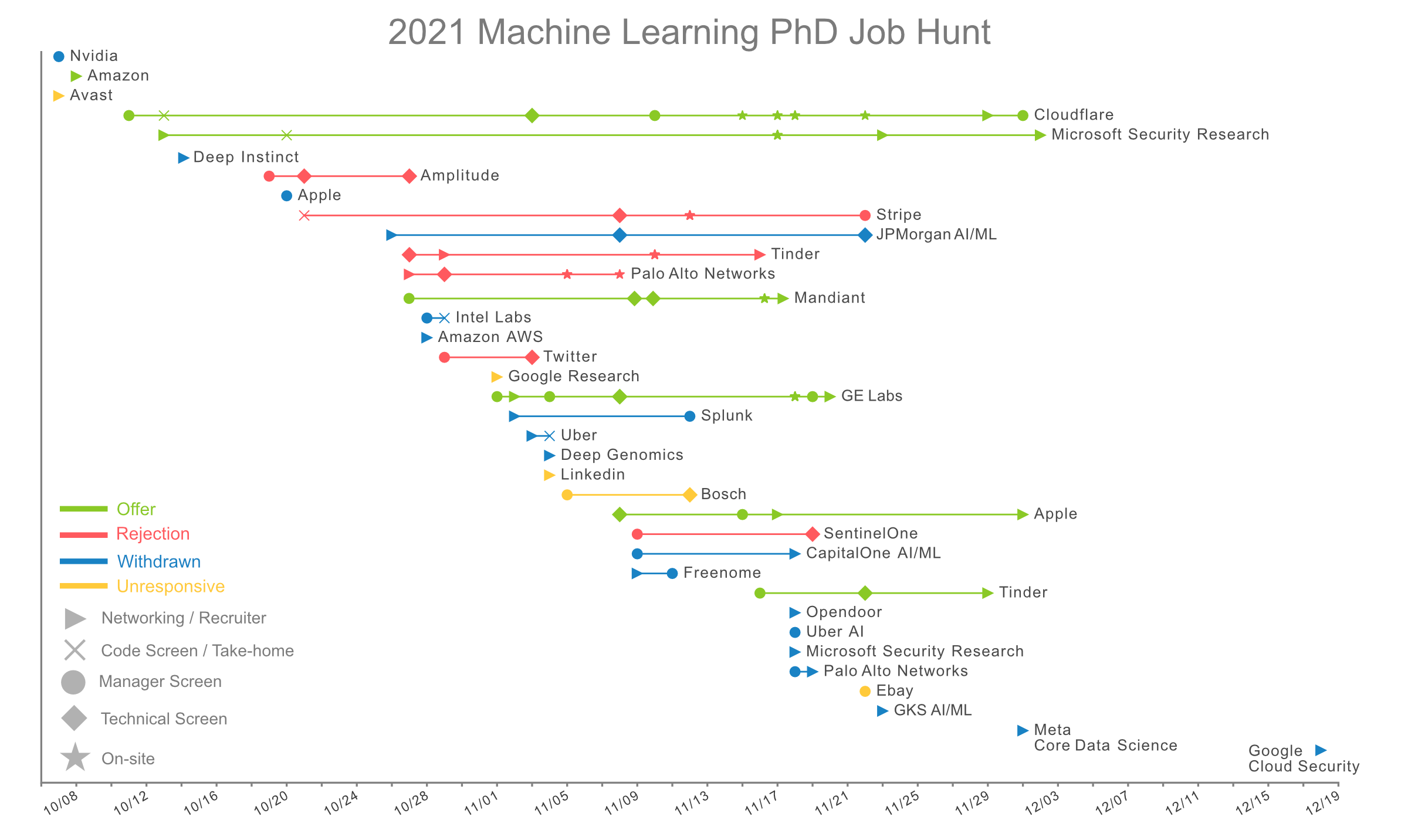 | Figure 1. 2021 ML PhD job hunt took 10 weeks and 137 hours |